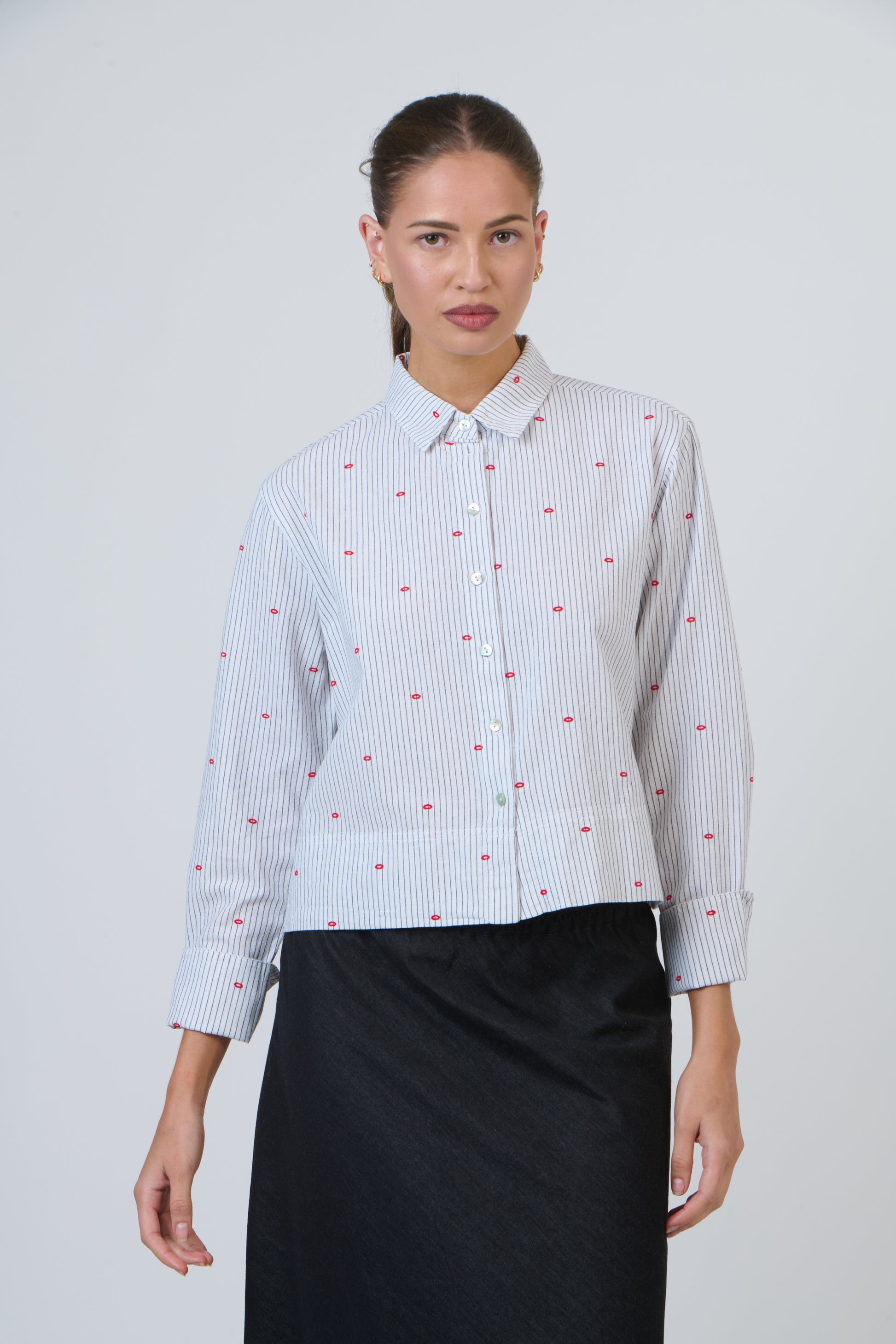 A pointed collar and button-down closure offer versatility, while long sleeves with adjustable cuffs provide styling flexibility. The structured back yoke enhances the shirt’s clean, tailored look. Finished with a contemporary straight hem for effortless styling.
