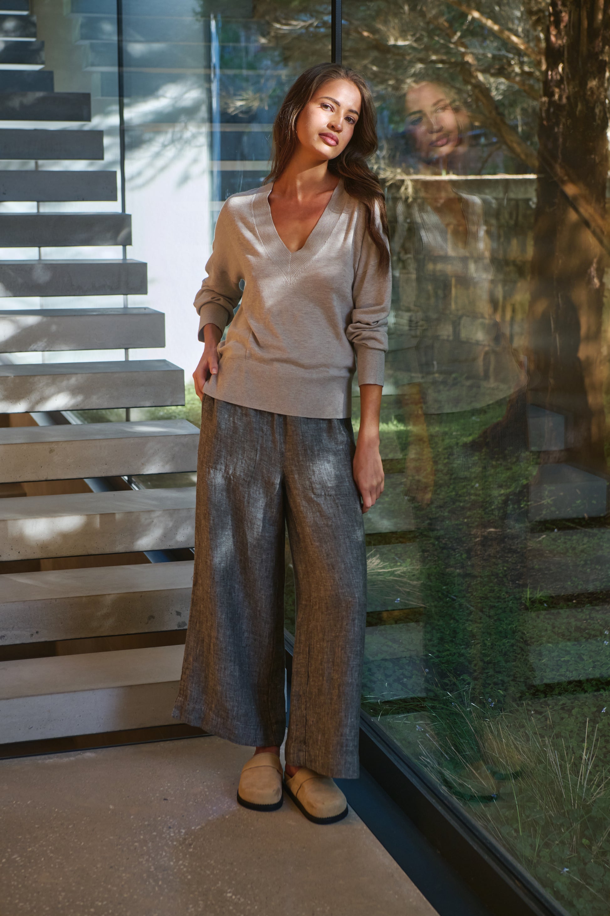 When in doubt, a classic pair of GA578 trousers is always the answer. Featuring an elasticated waistband and both front and back pockets, these trousers offer a flattering fit that pairs well with almost anything in your wardrobe. The perfect go-to for both busy days and easygoing weekends. Made from 100% linen.