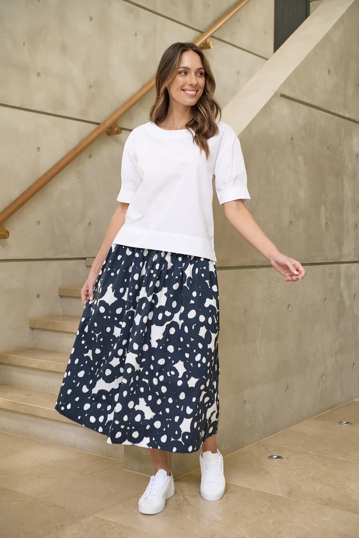 Elegant stitching along the neckline, sleeves and hem adds subtle, sophisticated detailing. The relaxed boxy silhouette brings effortless style, while the boat neckline and elbow-length sleeves create a timeless profile that transitions seamlessly from workday to weekend with uncompromising comfort.