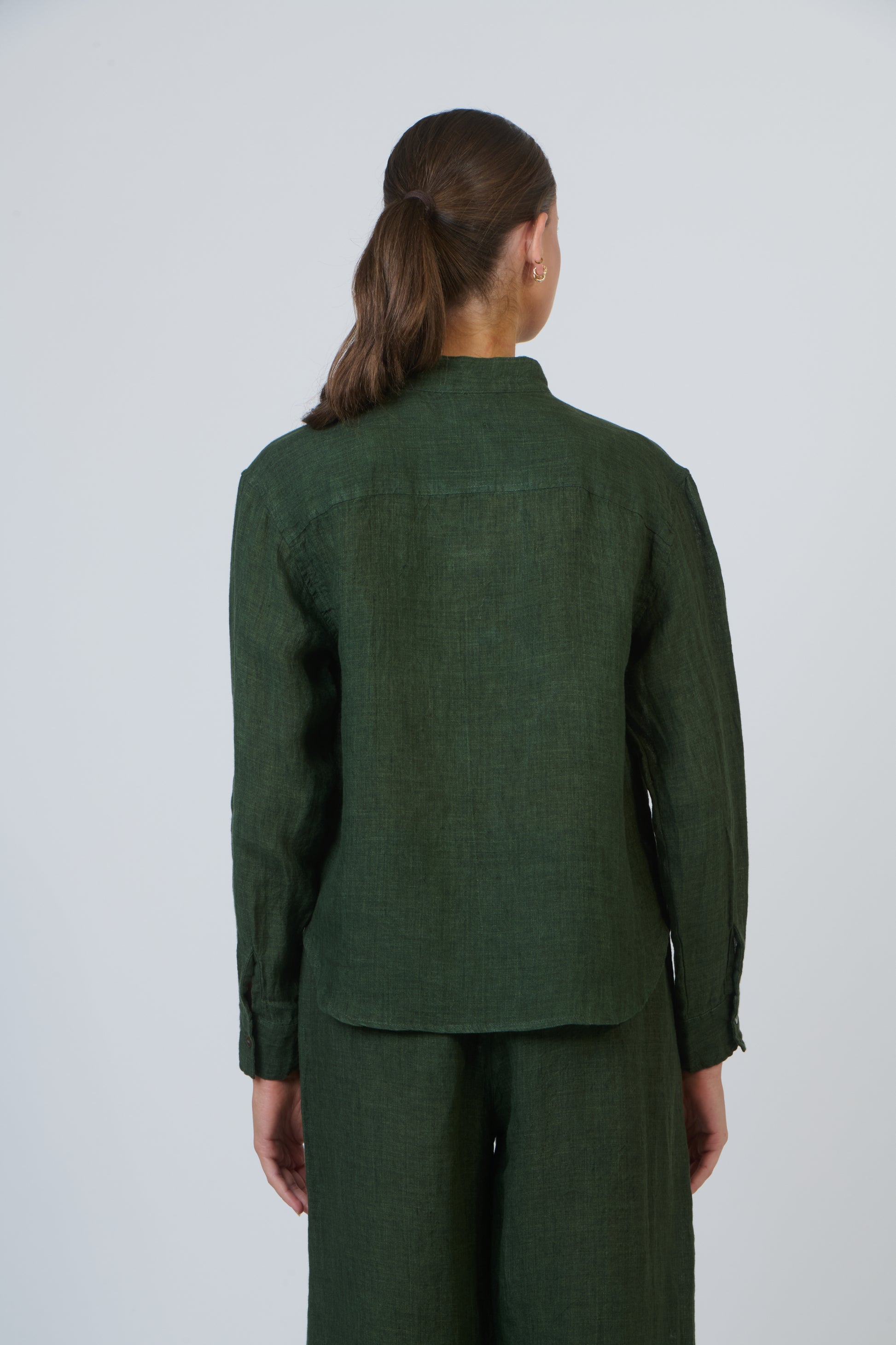 Make room for timeless texture with GA670, a relaxed linen top crafted for effortless elegance. Designed with a crisp standing collar and a hidden button closure, it stands out through its finely stitched pintuck detailing that runs down the front panel. The straight sleeves and buttoned cuffs balance the relaxed cut, while the plain back ensures a minimalist finish. Lightweight, breathable, and easy to style, it’s a staple you’ll reach for often.