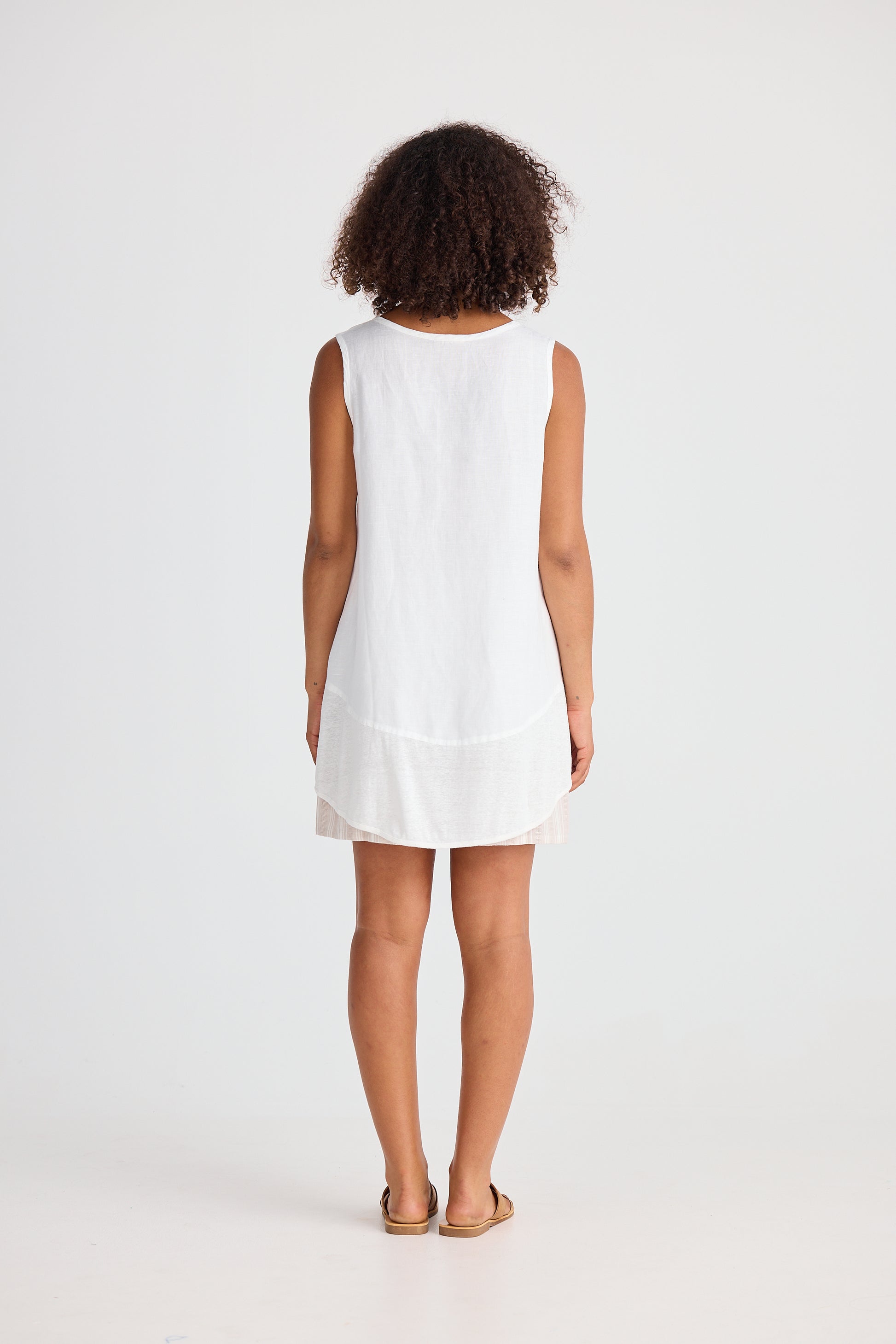 A staple with a stylish twist, the Shanty Nomad Singlet features a classic scoop neckline and a relaxed, easy fit. The contrast knit hem panel adds subtle texture and interest, elevating this everyday tank. Crafted from a breathable linen-viscose blend, it’s perfect for layering or wearing solo on warm days.