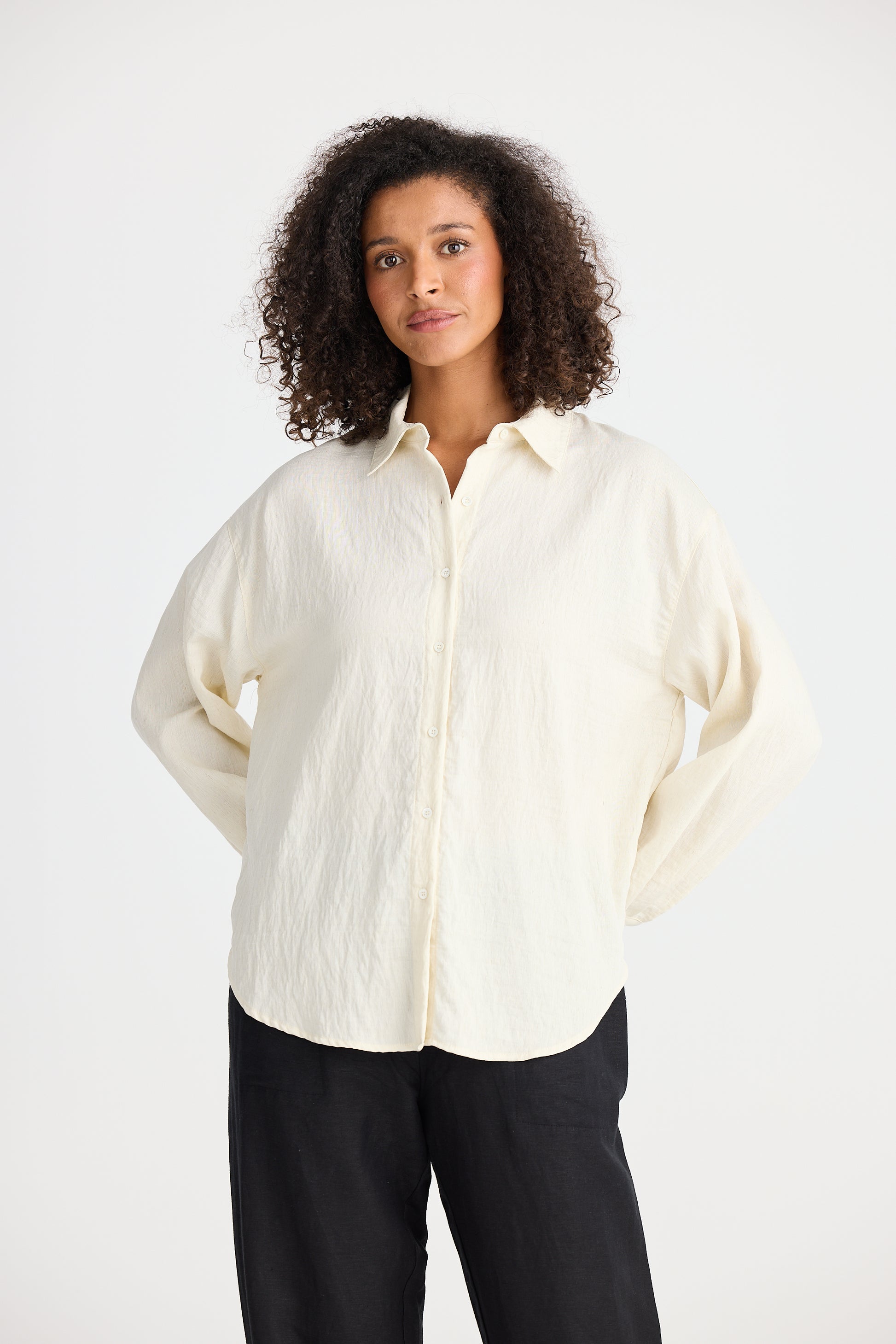 Elevate your everyday style with the Palermo Shirt in Wheat. Featuring a classic two-piece collar and a relaxed drop-shoulder silhouette, this versatile piece combines comfort with understated elegance. The functional front button-down design offers effortless wear, while the unique twist-back detail adds a modern, eye-catching touch. Perfect for pairing with tailored pants or casual denim, this relaxed-fit shirt brings a refined yet contemporary edge to your wardrobe.